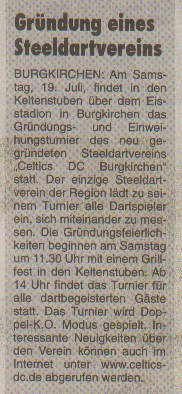 Unser Eröffnungs- und Einweihungsturnier war am 19.07.08 in Burgkirchen.Das Vereinsheim des Celtics DC Burgkirchen in den Keltenstuben wurde durch Kaplan Josef Peedikaparambil feierlich eingeweiht.